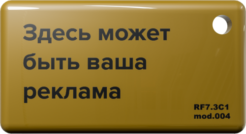 Ключ RF (RFID-13.56 МГц) с индивидуальным дизайном на одной стороне. Изготавливается под заказ. Пластиковый брелок, покрытый защитной эпоксидной смолой с логотипом. Специальная защита от несанкционированного копирования. Проверка аутентичности с использованием алгоритма 3DES. Используется совместно с модификациями блоков вызова и контроллеров ключей, имеющих в наименовании литеру "F".